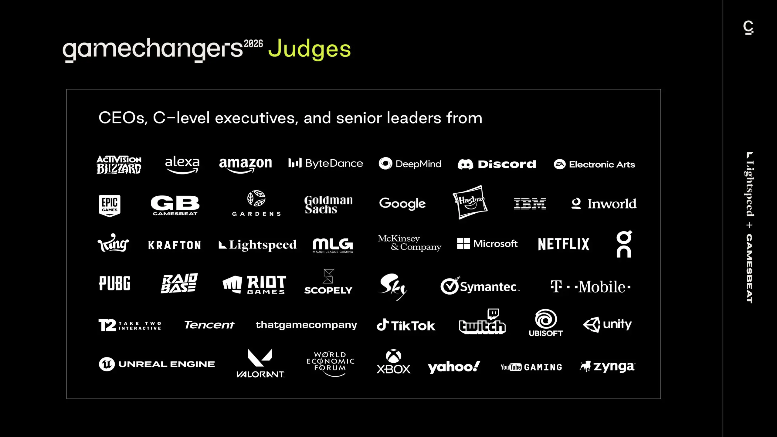 The industry is currently in the midst of a renaissance–one defined by bold ideas, new technologies, and a remarkable generation of founders reshaping how the world plays, works, and connects. Today’s most visionary entrepreneurs are building the future of interactive entertainment through innovations like generative AI, 3D technology, and extended reality. Game Changers honors and celebrates these exceptional startups that demonstrate how transformative breakthroughs come from relentless creativity and execution.